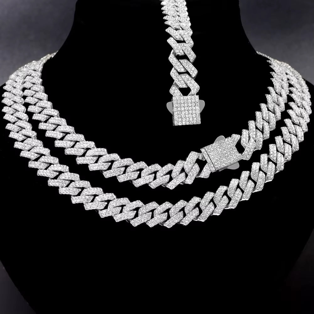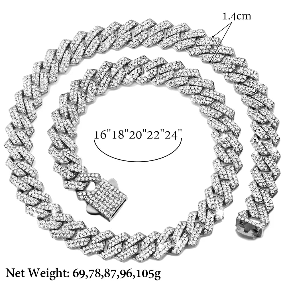 Haz que tu look destaque con la cadena de eslabones cubanos Iced Out 14MM, una pieza icónica del estilo urbano moderno.