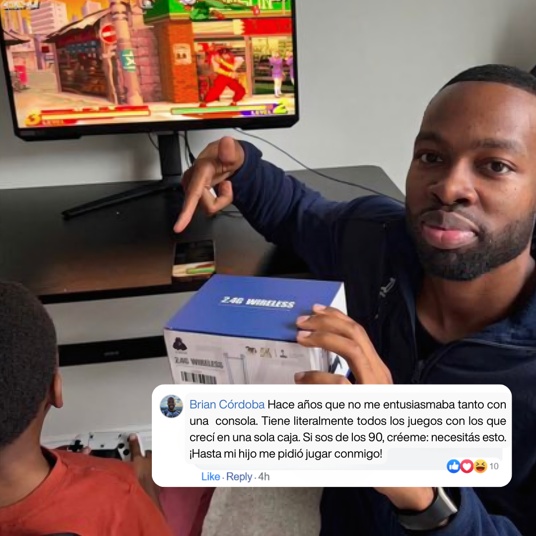 Volve a sentir la emoción de jugar como antes 🤩 Ahora encalidad 4k, concontroles inalámbricosy sin instalaciones. Solo conectás y listo ⚡️